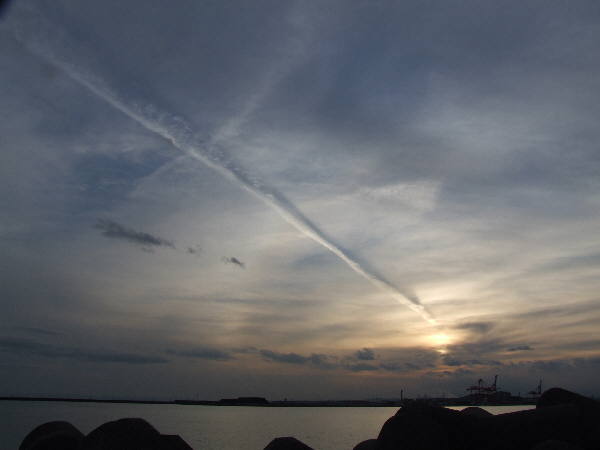 ・・・何も釣果が無かったので、夕焼けと飛行機雲の写真のみです。・・・ |