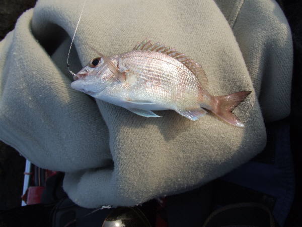 彼が戻ってきたので様子を聞くと、35センチのカイズを1匹釣ったという。やっぱりあの時のしなりがそうだったのか。