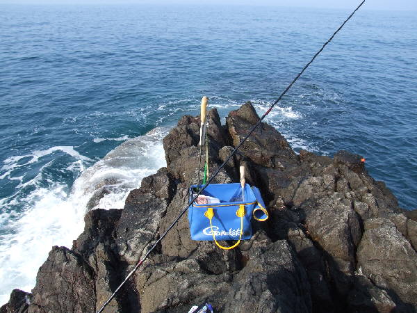 浜には4、5人の釣り客が居る。フカセ釣りの人は居ない。今日もいつもの所に入る。