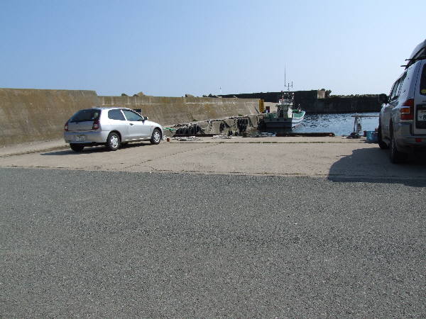 椿漁港の長い方の堤防には、結構人が入っている。我々は手前の短い堤防のテトラの付け根に入る。