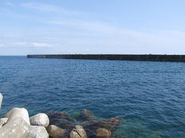 ・・・今回の釣り場、椿漁港の短い堤防から見た海の状況です。・・・ |