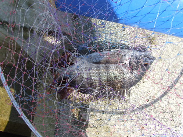 その近くに水くみバケツに入った30センチ弱のカイズも居た。先程の時合いの時に来たのだろう。