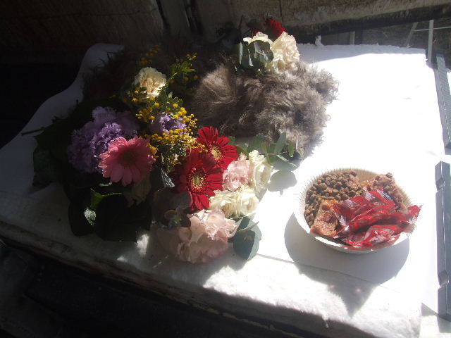 ・・・愛犬ミウの火葬直前の写真です。 これで本当に最後のお別れです。悲しいです。・・・ |