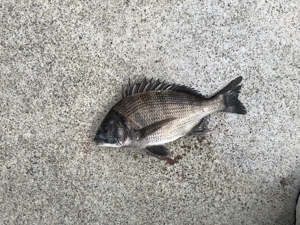 もしかするとマメグレがついばんでいるのかも知れない。しばらくして遠投で23センチのメジナが来た。